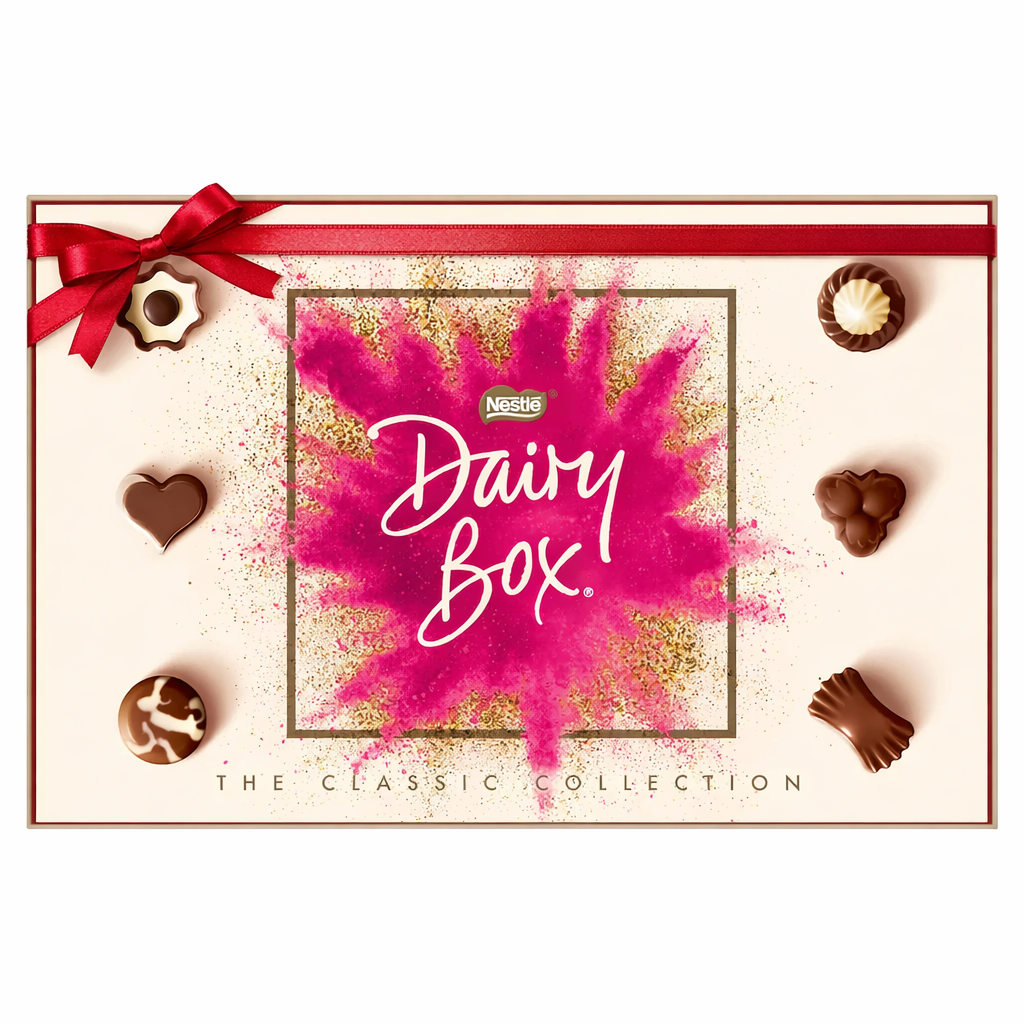 Beautifully presented in its iconic box and finished with a delicate ribbon, the Nestlé Dairy Box pairs perfectly with fresh flowers and makes your bouquet feel even more special. Ideal for birthdays, anniversaries, Valentine’s Day, or simply to show someone you care.